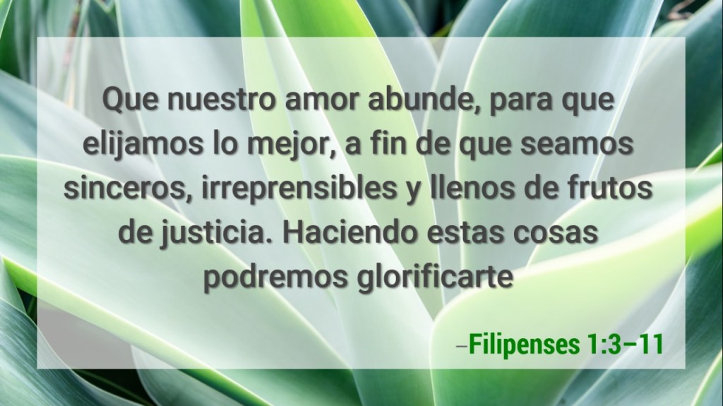 Cómo una iglesia, nuestra oración debería ser Señor, que nuestro amor abunde, para que elijamos lo mejor, a fin de que seamos sinceros, irreprensibles y llenos de frutos de justicia.