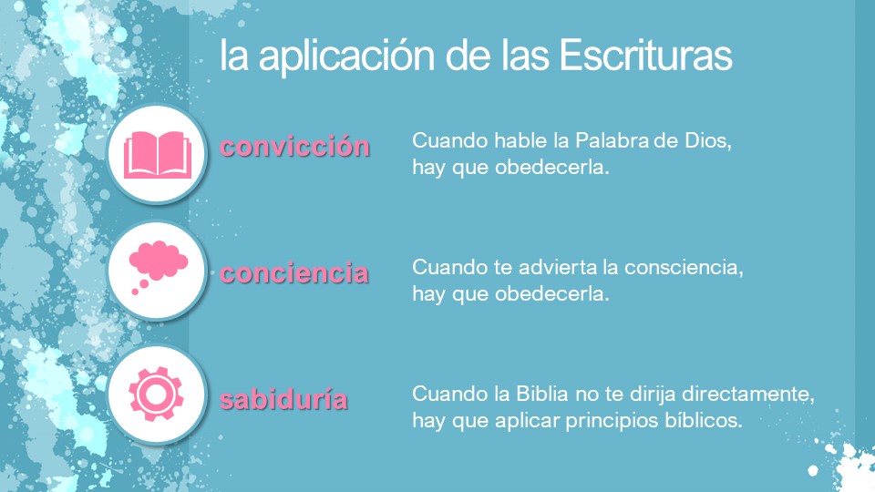 - Asuntos de sabiduría: cuando la Biblia no te dirija directamente, hay que aplicar principios bíblicos.