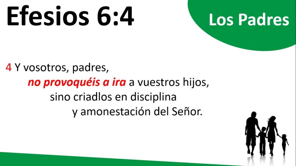 En Efe 6:4 nos enseña acerca de las responsabilidades de los padres cristianos. No provocar a ira a vuestros hijos, sino criadlos en disciplina y amonestación del Señor.