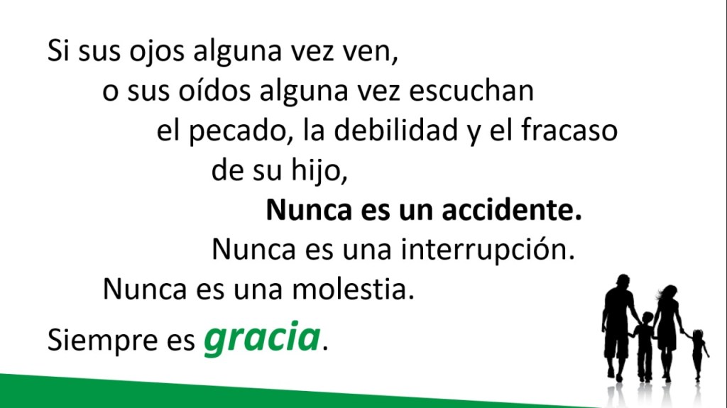 Nuestro padre celestial nos mira con todas nuestras debilidades y fracasos y no está enojado con nosotros. Nos muestra compasión y misericordia. Todos los días nos despertamos con nuevas misericordias de nuestro Señor. ¿No le darás a tus hijos lo mismo que Dios nos da todos los días de nuestras vidas? Misericordia. Misericordia. Misericordia.