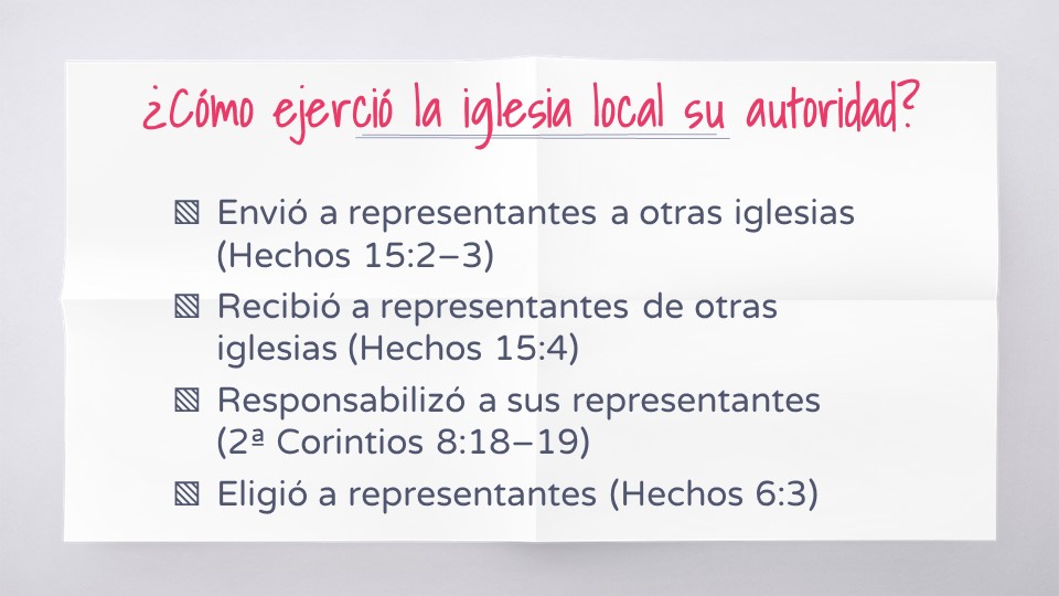 Si planteamos que el gobierno de la iglesia local debe ser congregacional, ¿qué evidencia vemos en el Nuevo Testamento? ¿En qué áreas ejerció la iglesia local autoridad y responsabilidad? La semana pasada, examinamos Hechos 15 y concluimos que la iglesia local tiene la autoridad y responsabilidad de guardar su doctrina.