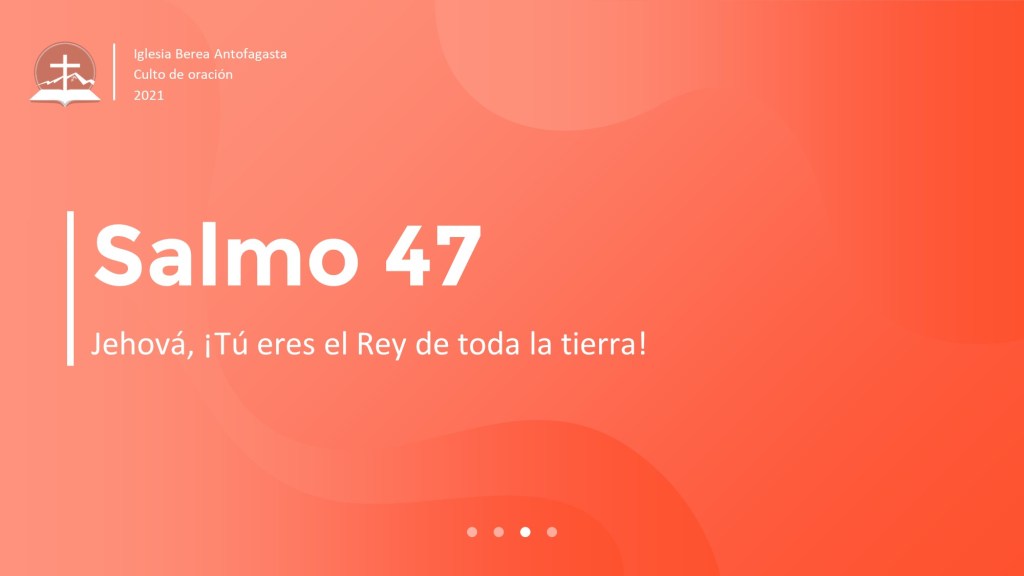 Es posible que en el momento de este salmo u hoy en día alguien pueda ver alrededor y desanimarse, pensando que Dios no está en control, pero el Salmo 47 nos recuerda que Jehová nuestro Dios es y siempre será el Rey Altísimo. Podemos orar el Salmo 47, alabando a Dios con esta frase sencilla, “Jehová, ¡Tú eres el Rey de toda la tierra!”.