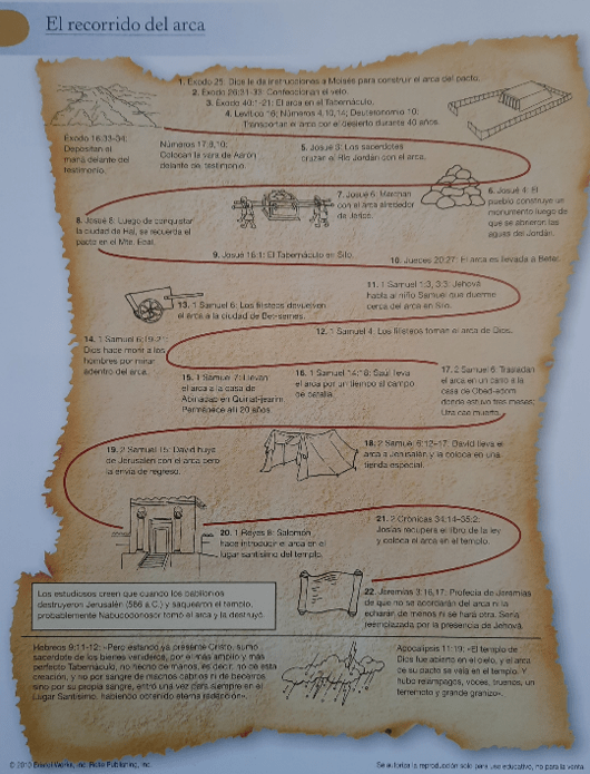 Vemos en todo este relato, el papel central del arca del pacto. Aparece por primera vez en el v. 3 “Cuando veáis el arca del pacto de Jehová vuestro Dios, y los levitas sacerdotes que la llevan, vosotros saldréis de vuestro lugar y marcharéis en pos de ella, a fin de que sepáis el camino por donde habéis de ir; por cuanto vosotros no habéis pasado antes de ahora por este camino.» El arca se menciona 17 veces en estos dos capítulos. El autor no nos permite perderlo de vista. El arca era un cofre grande, hecho de madera y revestido de oro puro por dentro y por fuera (vea Éx. 25:10-12). El arca era una señal visible de la presencia de Jehová entre Su pueblo. Hablando del Arca del Pacto y la presencia de Jehová entre Su pueblo, el Ps. Mark se está preparando para enseñar una serie de cuatro sesiones en mayo, titulada «El Templo en el Antiguo Testamento.” Sus cuatro sesiones incluirán los temas de la preparación del Templo, la construcción del Templo, la función del Templo y la historia del Templo. Esta serie está relacionada con nuestro tema principal del año, «Edificando La Iglesia».