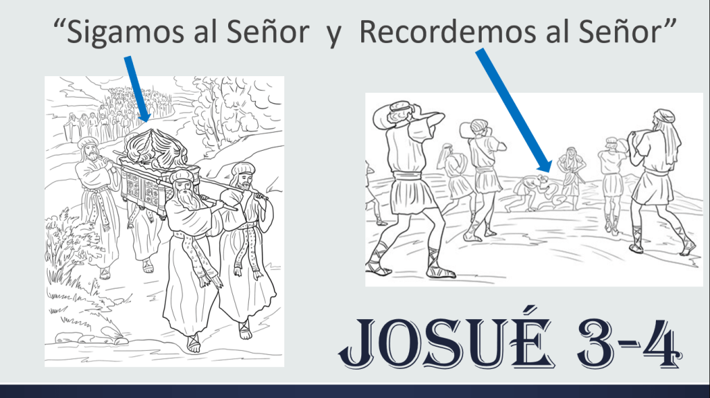 Nuevamente, supongo que ya han leído los capítulos 3 y 4 en preparación para el estudio de hoy. Josué 3 y 4 deben estudiarse juntos y serán los capítulos que estudiaremos hoy. Contienen y cuentan el siguiente episodio importante en el libro de Josué sobre la historia de la fidelidad de Dios a Israel y el cumplimiento de su promesa y pacto con ellos con respecto a la tierra prometida. Los capítulos 3 y 4 son las dos caras de la misma moneda. Hacen un énfasis en puntos separados para los lectores originales (y para nosotros como lectores hoy en día), pero ambos puntos están conectados por el mismo evento, el cruce del río Jordán. Los dos puntos principales son “Sigamos al Señor y Recordemos al Señor”. Ambos capítulos describen el cruce del río Jordán. Sin embargo, aunque el capítulo 4 comparte algunos detalles adicionales del cruce que no se dan en el capítulo 3, se centra especialmente en las piedras conmemorativas que tenían el propósito específico de mantener viva la memoria y el significado de este gran y milagroso evento para las generaciones futuras. El capítulo tres comparte la proclamación del cruce y los preparativos para el cruce.