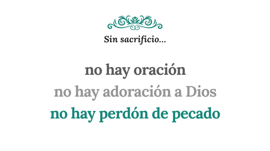 Sin sacrificio, no hay acceso a Dios. Hoy en día, el templo no existe y no se ofrecen sacrificios animales, sin embargo, tenemos en Jesús un sacrificio perfecto y eterno. Por eso, podemos acercarnos a Dios en Jesús: podemos orar con confianza, podemos adorar a Dios y tenemos el perdón de nuestros pecados por medio de Jesús.
