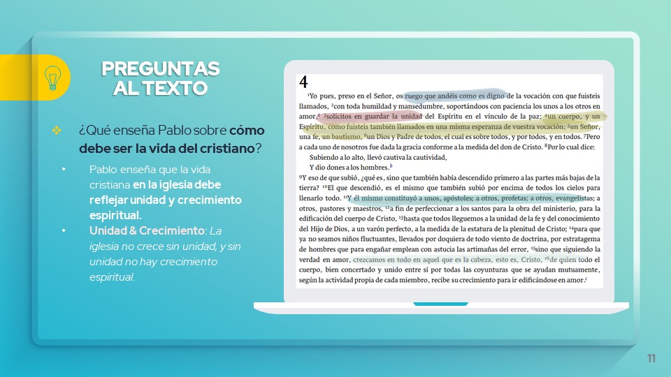 - Verdadero o Falso: A partir del capítulo 4 Pablo inicia una nueva sección en su carta netamente doctrinal basado en un teología profunda, divina y poco práctica ____