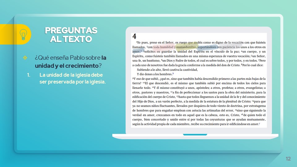 - Según el versículos 12, ¿de qué maneras participan los pastores/maestros y la membresía en la edificación del cuerpo de Cristo?