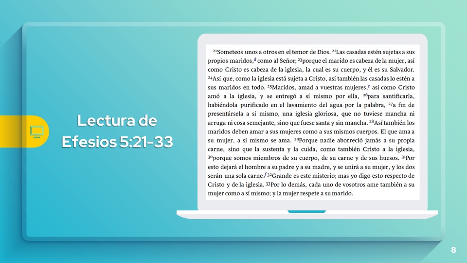 - Verdadero o Falso: Según el diseño de Dios, desde el principio, el propósito del matrimonio era glorificar a Dios siendo un reflejo de la unión de Cristo y la iglesia____