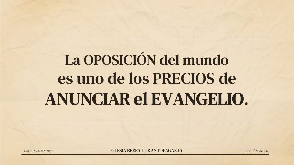Y como reflexión final, creo que todos podemos ver que, en nuestro país, hemos vivido años de relativa paz y libertad religiosa, pero, con todo lo que está sucediendo en el ámbito político y social, podemos ver que se percibe en el horizonte una creciente ola de amenazas, movientes sociales, y filosofías humanas que tiene como objetivo destruir y trastornar el corazón y la mente de los hombres y de los creyentes de la iglesia. Junto a ello, en nuestro país se está preparando una constitución que abiertamente niega la autoridad de Dios y las Escrituras. Y yo sé que muchos de nosotros están muy preocupados por esta realidad; y, tal vez, algunos no tienen idea de estas amenazas. Sin embargo, hoy hemos visto el ejemplo de lo que Dios quiere que nosotros hagamos en la era que vivimos. Y eso que Dios quiere es hablemos de Cristo y que oremos a Él, diciendo: “Señor mira las amenazas, y ahora, en cuanto a mí, dame valor para predicar tu Palabra”.