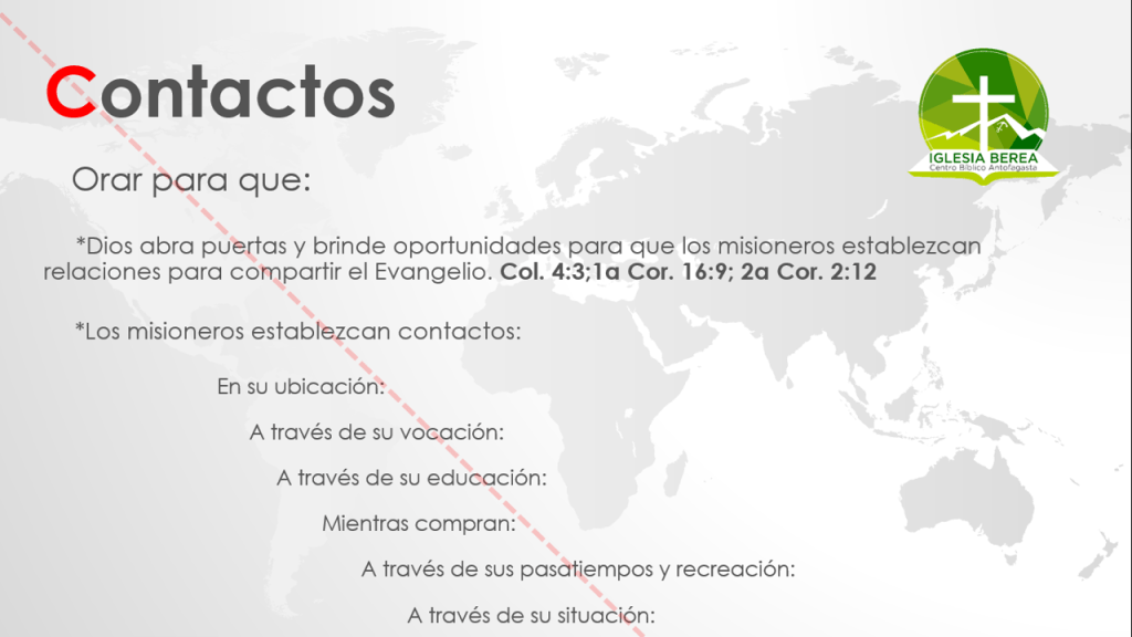 Contactos: por la provisión de Dios de puertas abiertas para desarrollar amistades para el Evangelio.