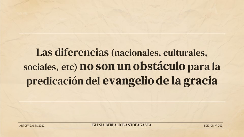 (3) ¿Hemos entendido que el evangelio de la gracia no discrimina a hombres, sino que debe ser predicado a todos los hombres, incluyendo a los que socialmente son mirados en menos?