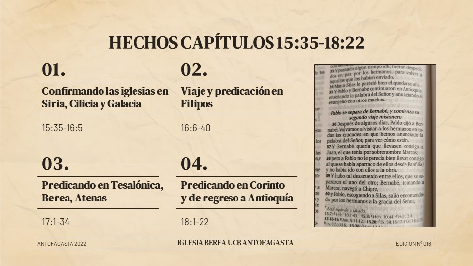 Bien. Yo quisiera responder esta pregunta, leyendo algunos versos que, creo que, resumen de buena manera el resultado de la obra de Dios por medio de Pablo y otros discípulos de Cristo en este segundo viaje intencional. Y los texto son: