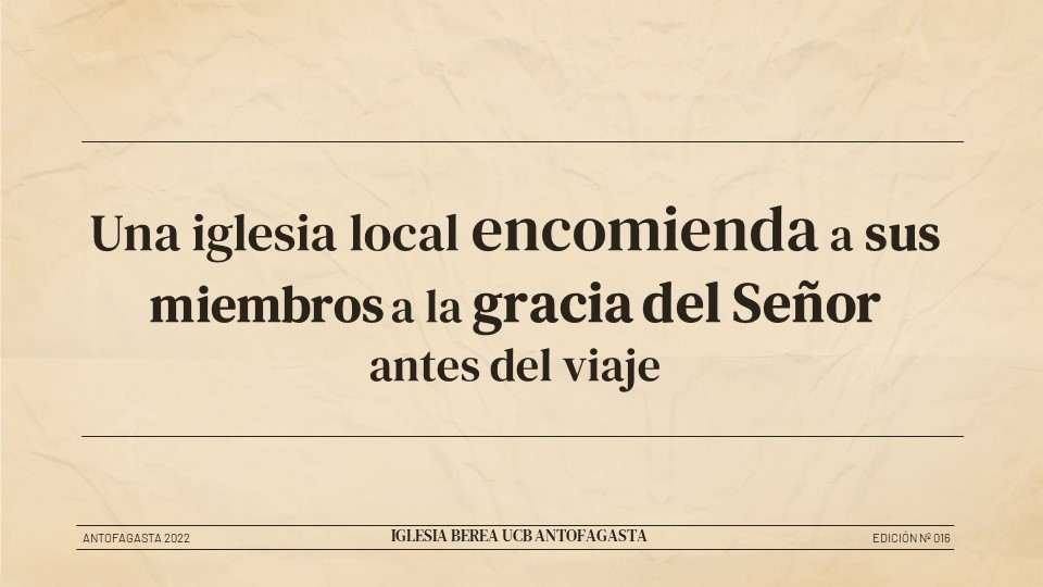 - Pablo salió de Antioquía de Siria (Hch. 15:35-36) encomendado por los hermanos a la gracia del Señor (Hch. 15:40)