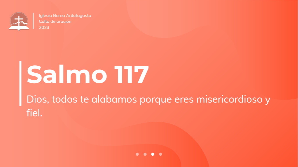 Y, finalmente, este salmo 117 también nos enseña que independiente si crees o no crees en Dios, o si eres parte de la iglesia o no, igualmente tendrás que reconocer un día que Dios es digno de ser exaltado por toda la creación. Y es más, un día todos nosotros estaremos delante de Jesucristo, el rey prometido a Israel y el único salvador del mundo, y cuando estemos delante de Su presencia, todos tendremos que arrodillarnos delante de Él y reconocer que Él es el Señor y Rey. Así dice la palabra de Dios en la carta a los filipenses capítulo 2, hablando de Jesucristo, dice: “9Por lo cual Dios también le exaltó hasta lo sumo, y le dio un nombre que es sobre todo nombre, 10para que en el nombre de Jesús se doble toda rodilla de los que están en los cielos, y en la tierra, y debajo de la tierra; 11y toda lengua confiese que Jesucristo es el Señor, para gloria de Dios Padre”. Hermanos, visitas, amigos, todos confesaremos un día que Jesús es el Señor. Sin embargo, si alguno de ustedes está esperando que llegue ese día para recién reconocer esta verdad, con toda certeza le puedo asegurar que tu confesión del Señorío de Jesucristo no será para ti una canción de bendición sino será una declaración de la causa de tu juicio y castigo eterno, ya que la Palabra de Dios dice que es hoy el día que debes reconciliarte con Dios por medio de la fe en Jesús y el arrepentimiento de tus pecados. Así dice la Palabra de Dios: “Pero Dios, habiendo pasado por alto los tiempo de esta ignorancia, ahora manda a todos los hombres en todo lugar, que se arrepientan” (Hechos 17:30). Por tanto, como embajadores en el nombre de Cristo te decimos a ti: arrepiéntete de haber negado a Cristo como Salvador y único Señor, y reconcíliate con Dios por medio de Jesucristo, creyendo en Él, y creyendo que Él es el único que puede perdonar tus pecados y ser declarados sin culpa delante de Dios, de tal modo que, cuando llegue el día en que toda la tierra cante al Señor “aleluyas a Jesucristo Rey”, tu no sea llevado a juicio ni seas hallado culpable de pecado sino que puedas disfrutar de las bendiciones de Dios en Cristo Jesús que nos asegura que todos los que hemos sido perdonado por Dios, por gracia, por medio de la Fe en Jesús no iremos a condenación sino que estaremos para siempre con el Señor, sabiendo que Aquel que lo prometió nunca faltará a su promesa porque Él es Misericordioso y Fiel.