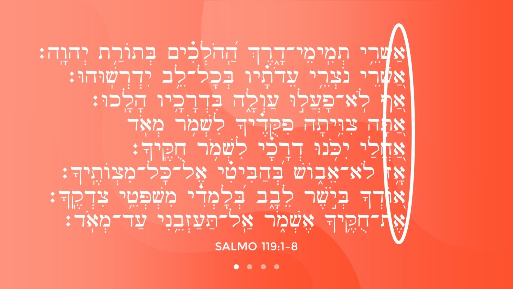Un asunto que hemos enfatizado desde el principio de nuestro estudio de los salmos es que los salmos son unidades, es decir, que debemos entender el todo del salmo. En el salmo 119, encontramos un desafío muy grande por la largueza del salmo, pero tenemos que recordar que el salmo fue escrito a propósito para leerlo todo (desde la A hasta la Z, digamos). El salmo 119 es una unidad.