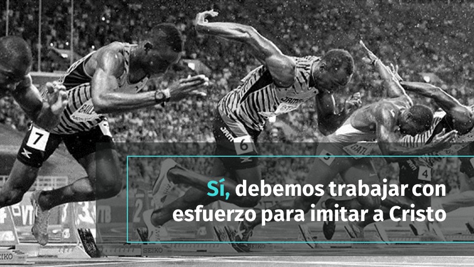 Ahora bien, tampoco estoy diciendo los creyentes debemos esforzarnos por “correr detrás de nuestras salvación como para obtenerla”; sabemos nuestra salvación nos ha sido dada solo por gracia. Así que no estoy hablando de «correr tras la salvación para alcanzarla» sino que, más bien, estoy hablando de correr y esforzarnos según el impulso de la nueva vida que Dios nos ha dado en Cristo; estoy hablando de correr con pasión, con gratitud, con amor, mirando a nuestro Señor y salvador Jesucristo. Por lo tanto, sí es necesario esforzarse, sí es necesario trabajar con esfuerzo por imitar a Cristo, porque esa manera se vive la vida que Dios nos ha dado solo por gracia.