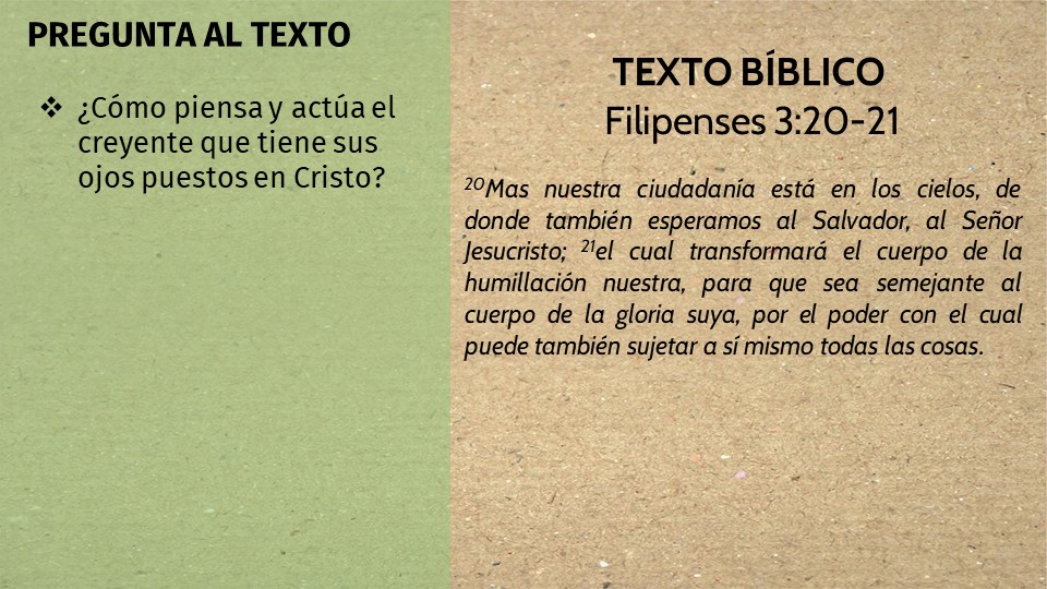¿CÓMO PIENSA Y ACTÚA EL CREYENTE QUE TIENE SUS OJOS EN CRISTO?