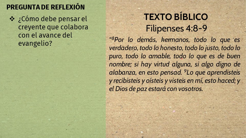 PENSANDO EN TODO LO QUE CONTRIBUYE AL AVANCE DEL EVANGELIO
