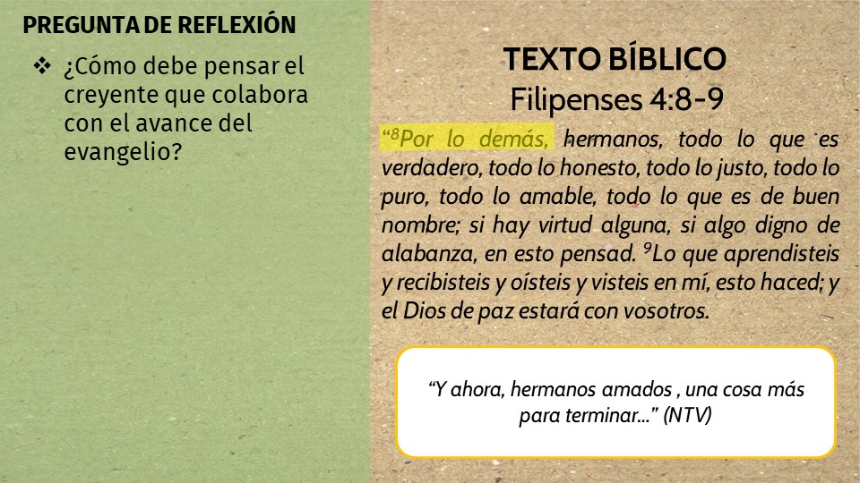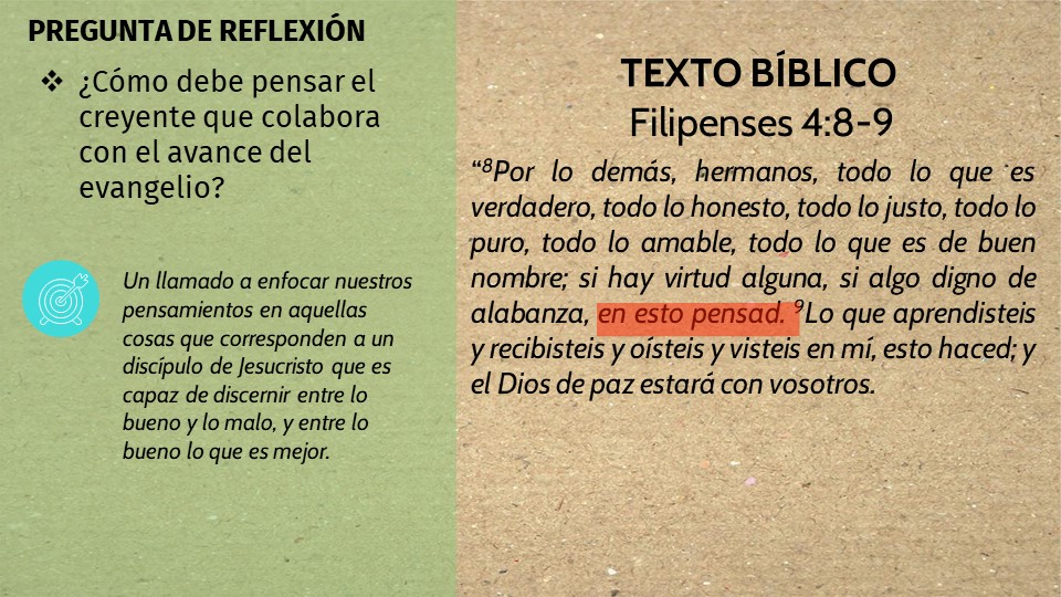 #5 Reflexión: Pablo llama la atención de la mente hacia lo que contribuye con el avance del evangelio
