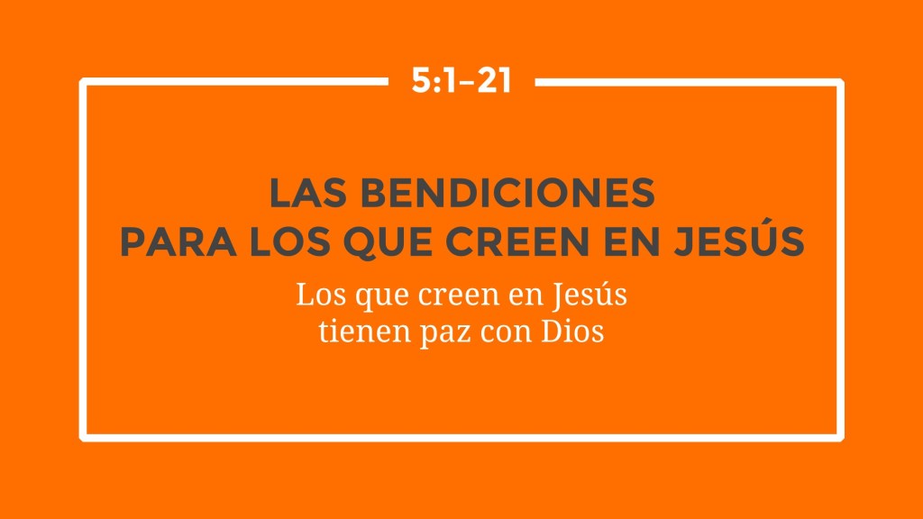 En la segunda sección de la epístola (5:1–8:39), Pablo expone las bendiciones para los que creen en Jesús. El capítulo 5 habla de la bendición de tener paz con Dios por medio de Jesucristo.