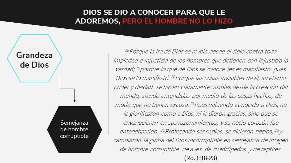 Lamentablemente, una vez que el pecado ingresa a la humanidad, el hombre no adoró a Dios y ni respondió correctamente al conocimiento que Dios había revelado de sí mismo.