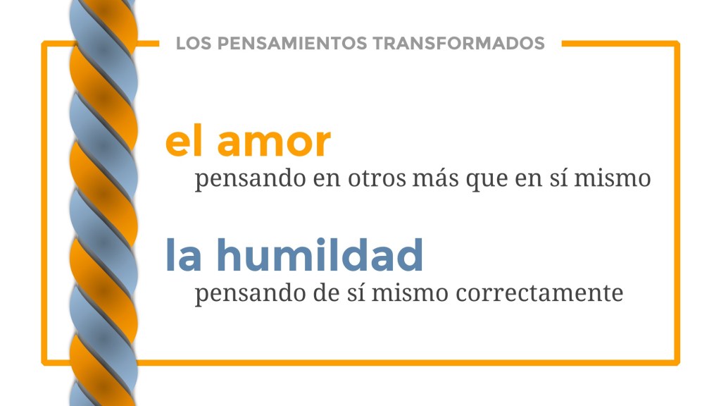 La transformación de nuestros pensamientos se evidencia en dos maneras: el amor y la humildad. El amor es distinto del mundo porque piensa en otros más que en sí mismo. La humildad es distinta del mundo porque piensa de sí mismo correctamente.