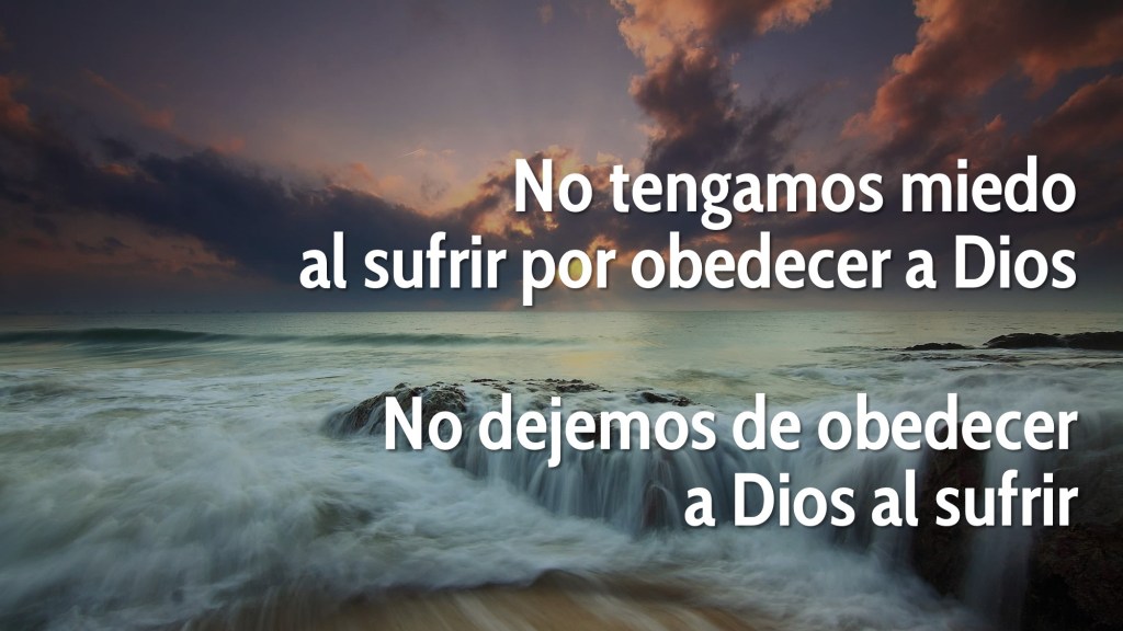 En tercer lugar, si la voluntad de Dios es que suframos injustamente por obedecerle, sabemos que Él nos vindicará (3:17–22). Como Pedro lo ha hecho varias veces, pone el ejemplo de Jesucristo para que lo sigamos. Jesús también sufrió (3:18), obedeciendo la voluntad del Padre, y Dios lo resucitó y lo elevó a su diestra, sobre toda autoridad y potestad (3:22). Por eso, no debemos tener miedo al sufrir por obedecer a Dios ni dejar de obedecer a Dios al sufrir.
