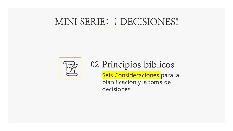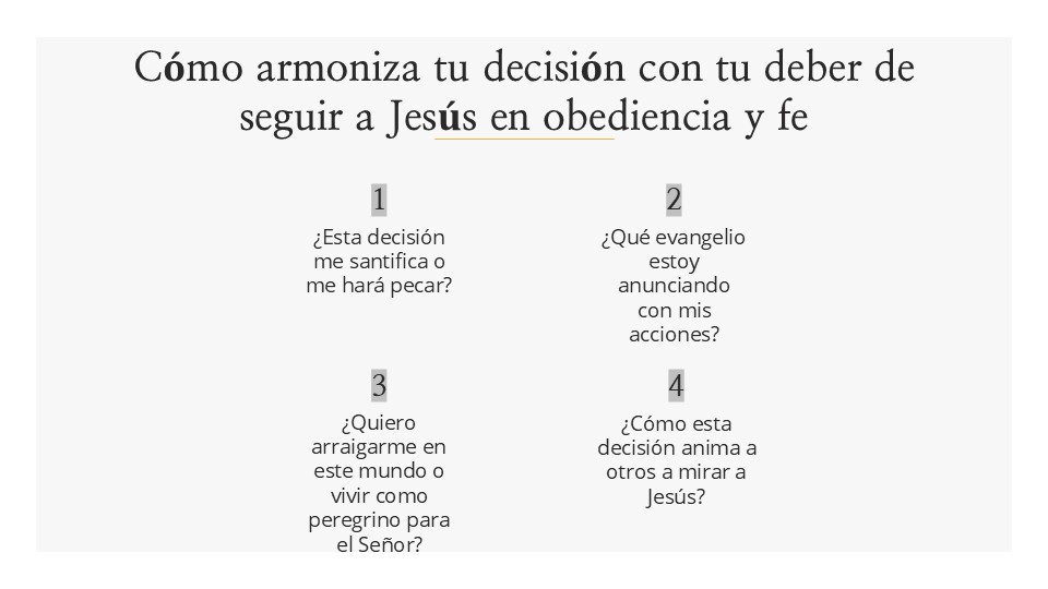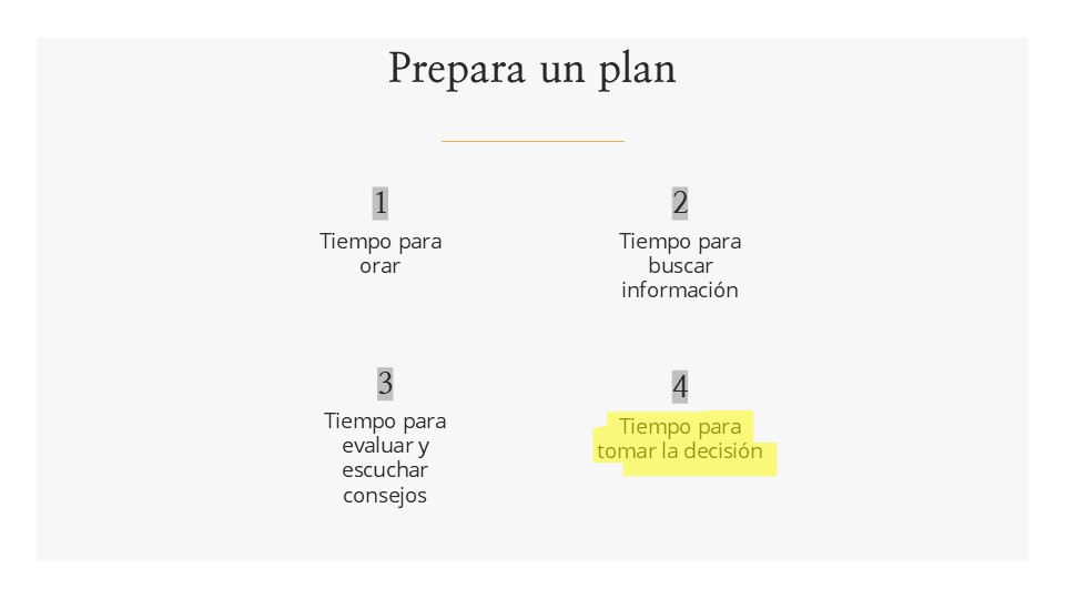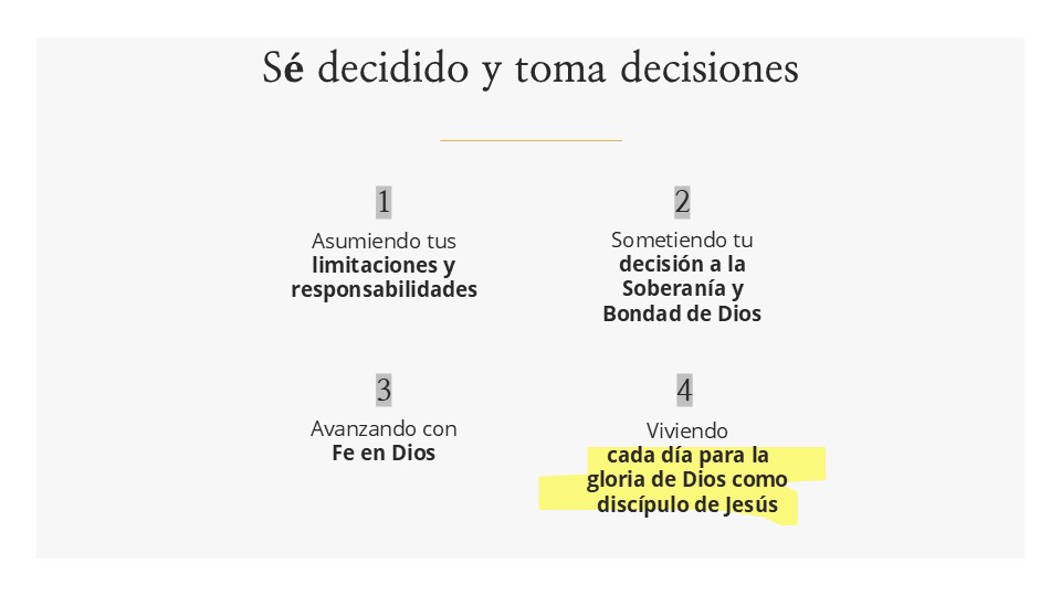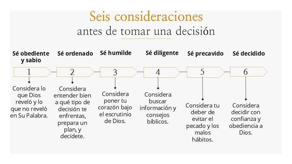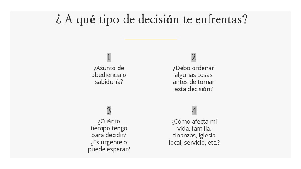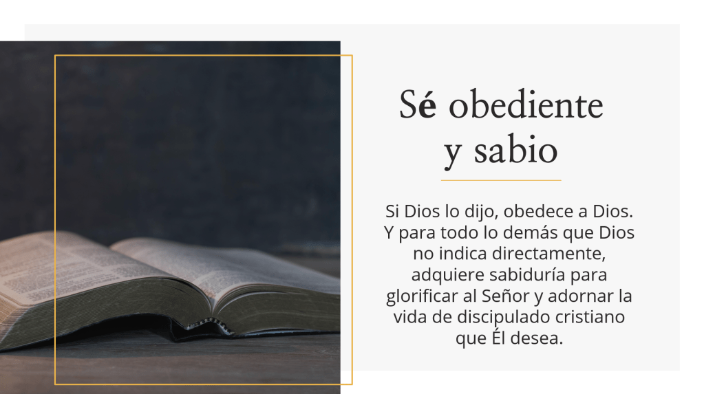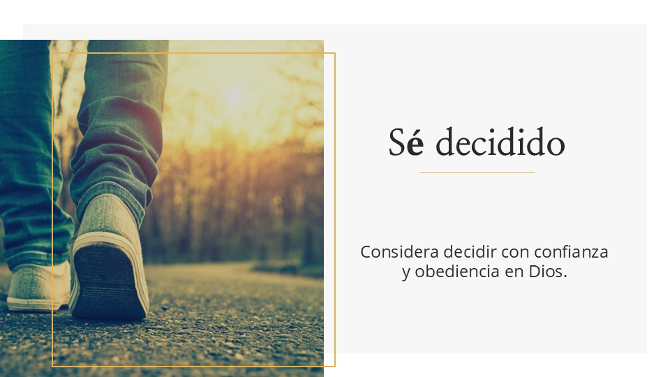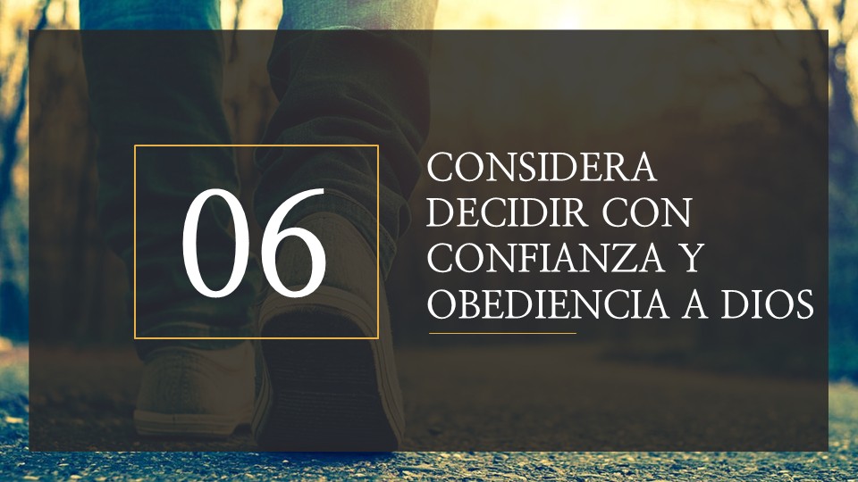 Antes de tomar una decisión es sabio considerar primero lo que Dios ha revelado en las Escrituras y asegurarnos de que si efectivamente Dios ha dicho algo al respecto o no. Y en caso de que Dios sí hable directamente sobre el tema que estás pensando, entonces toma, ¡Ya, la decisión de obedecer al Señor!