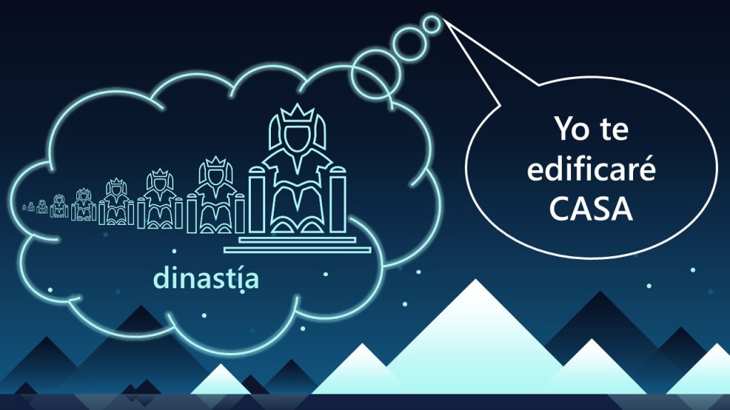 El pacto que Jehová hizo con el rey David y con su hijo Salomón extiende a toda la dinastía de los reyes de Judá. Es un pacto unilateral, en el que Dios se obliga a sí mismo dar beneficios a David y sus hijos los reyes. La promesa de Dios es de tres partes: Jehová prometió hacerle a David una casa, una dinastía de reyes de los hijos de David (v. 12). En segundo lugar, le prometió tener misericordia (el amor leal de Jehová) de David y de sus hijos para siempre (vv. 14–15). En tercer lugar, hay la promesa de un reino para siempre y un trono eterno (v. 16).