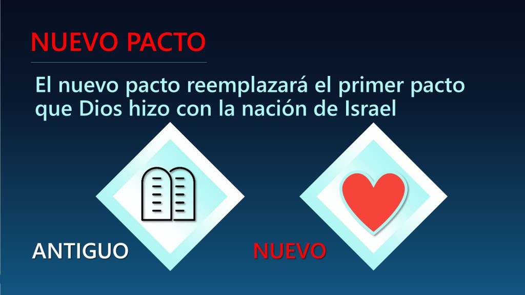 El nuevo pacto es nuevo porque reemplazará el primer pacto que Dios hizo con la nación de Israel (Jeremías 31:32–33). Lo nuevo del nuevo pacto no es la bendición de Dios sobre la nación de Israel, sino la bendición universal, que se extiende a todo israelita en aquellos días.