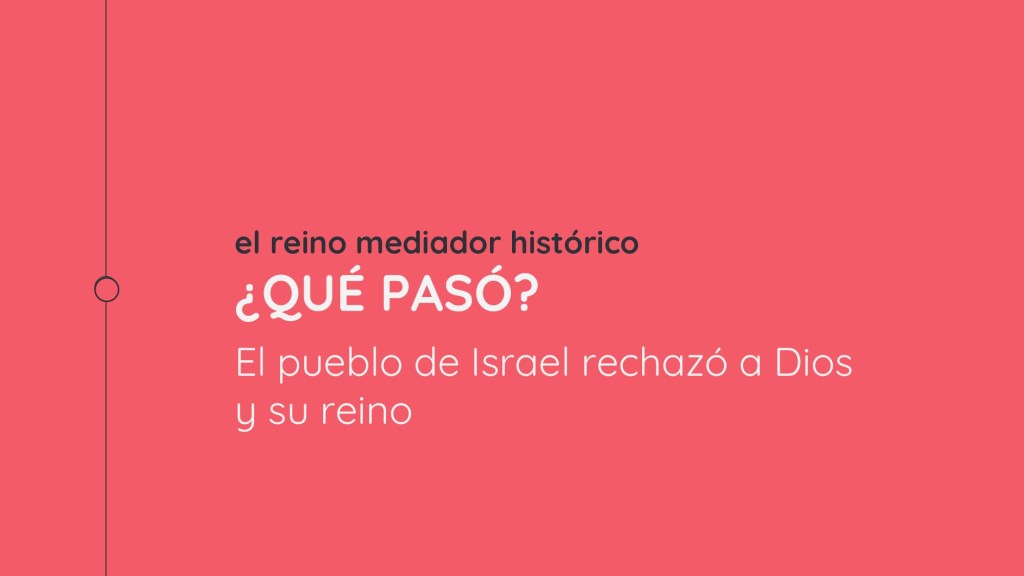 El Antiguo Testamento es la historia del reino mediador de Israel. Dios escogió directamente a los líderes: a Moisés, Josué, los jueces y los reyes (hasta Salomón). Después de ese momento, vemos la historia de la nación en declive: la división del reino, la idolatría y desobediencia. El fin del reino mediador en el AT sucedió con la destrucción del reino del norte, la salida de la nube de gloria del templo y el cautiverio del reino del sur. ¿Qué pasó? En palabras sencillas, el pueblo de Israel rechazó a Dios y su reino.