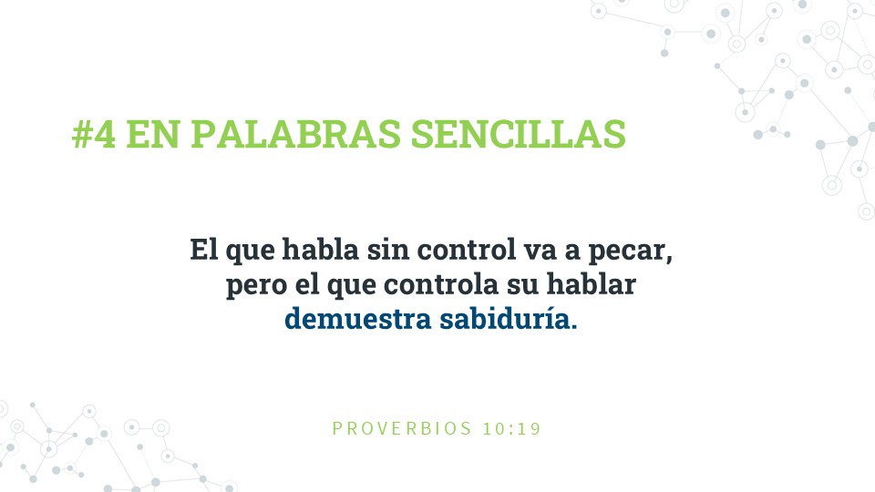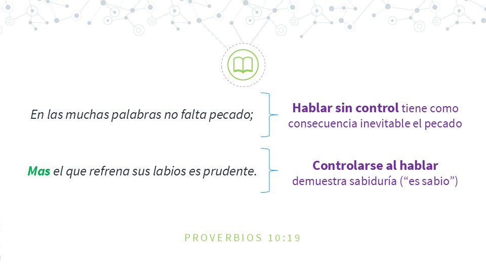 Cuando se tiene dominio propio, se tiene mucho más control de las palabras y, por tanto, éste será un hombre o una mujer que medirá sus palabras, que no hablará más de la cuenta, que no dirá las cosas sin pensar y que, incluso, sabrá cuándo hablar y cuándo callar. Y por ese control que tiene de sus palabras demostrará sabiduría y evitará pecar con sus palabras.