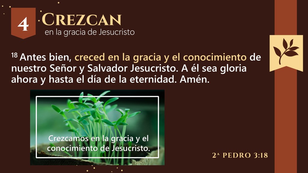 Debemos crecer en la gracia y el conocimiento de Jesucristo, glorificándolo ahora y para siempre (3:18; cp. 1:8-11).