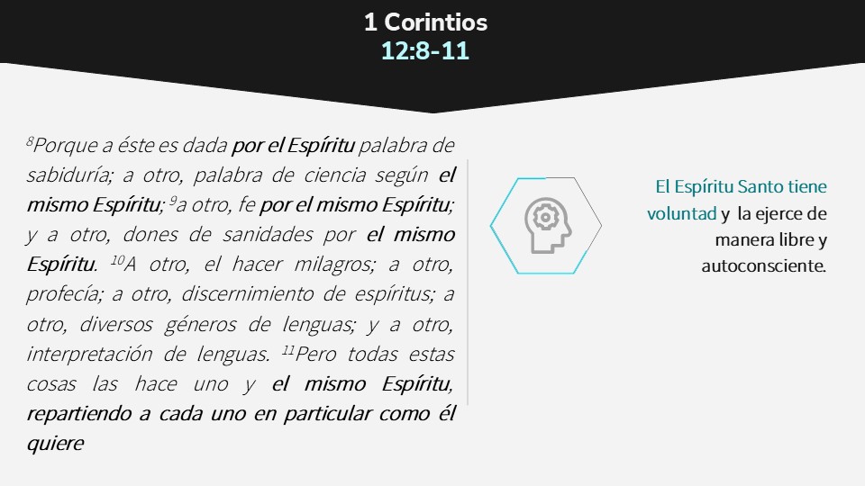 Otra característica de la personalidad del Espíritu Santo es que tiene voluntad, y que la ejerce de manera libre, soberana y autoconsciente.