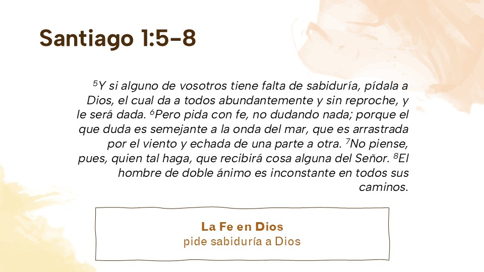 La oración de fe, pidiendo sabiduría la Señor, no admite la incongruencia de pedir cosas a Dios sin creer en Él: Sin creer que Su sabiduría es mucho mejor que la nuestra, o sin estar dispuesto a aceptar que la respuesta del Señor para las circunstancias que vivimos puede ser muy distintas a las de nuestras expectativas. Hermanos, debemos pedir a Dios por sabiduría creyendo que Él sabe perfectamente qué es lo mejor para nosotros, incluso si la respuesta del Señor a nuestras oraciones es muy distinta a nuestras expectativas.
