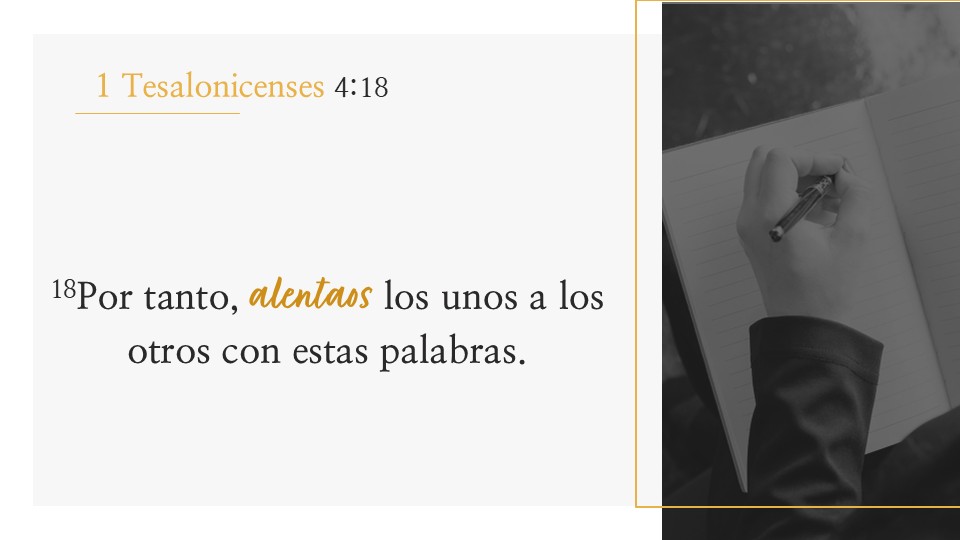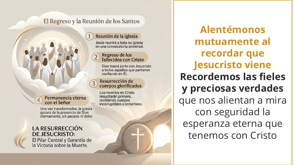 Todo aquel creyente que escucha esta verdad, hoy mismo, tiene el deber de animar al hermano que está a su lado; literalmente, trayéndole cerca de su corazón, y recordándole que Jesús viene. Y un día, al sonar la trompeta, Jesucristo reunirá a toda su iglesia, y ninguno de los que creyeron en Él se quedarán atrás, sea que estén vivos o que hayan muerto.